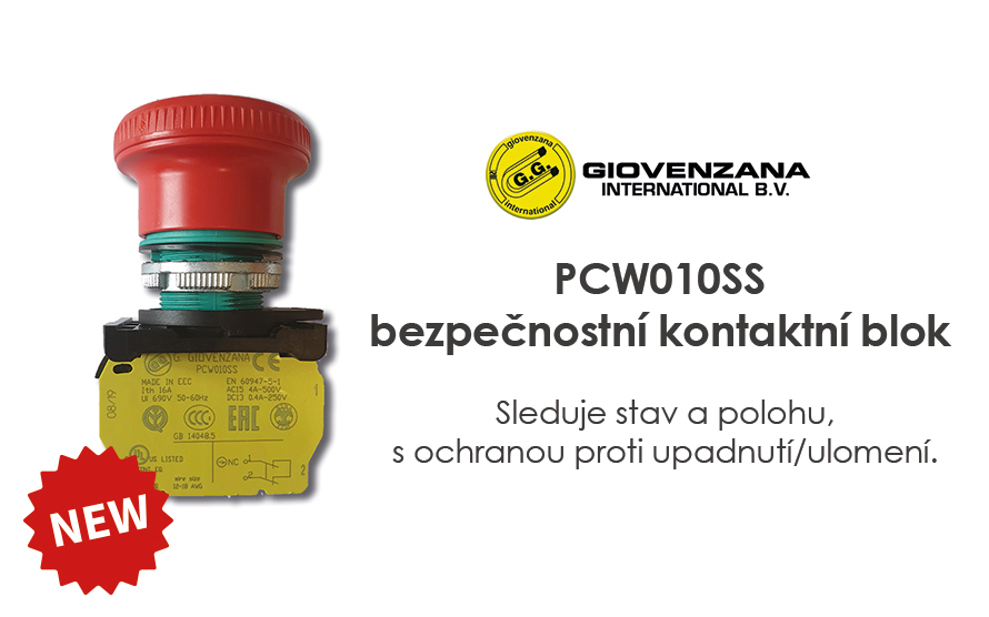 Společnost Giovenzana v letošním roce uvedla na trh nový výrobek, zvyšující bezpečnost strojů: bezpečnostní NC kontaktní blok pro centrál STOP (Self-Monitored Contact), zcela nové konstrukce.
