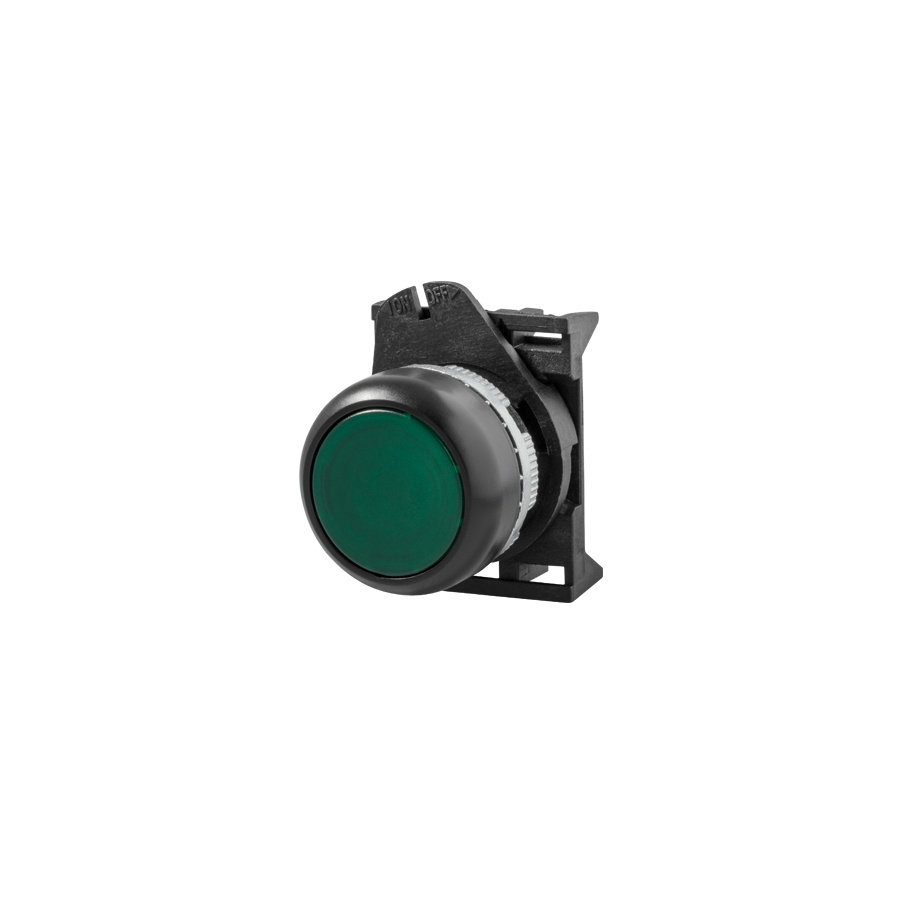 Popis: Ploché podsvítitelné modré tlačítko, průměr hlavy 30 mm, určený do otvoru 22mm, stupeň krytí IP65. Řada Orion.