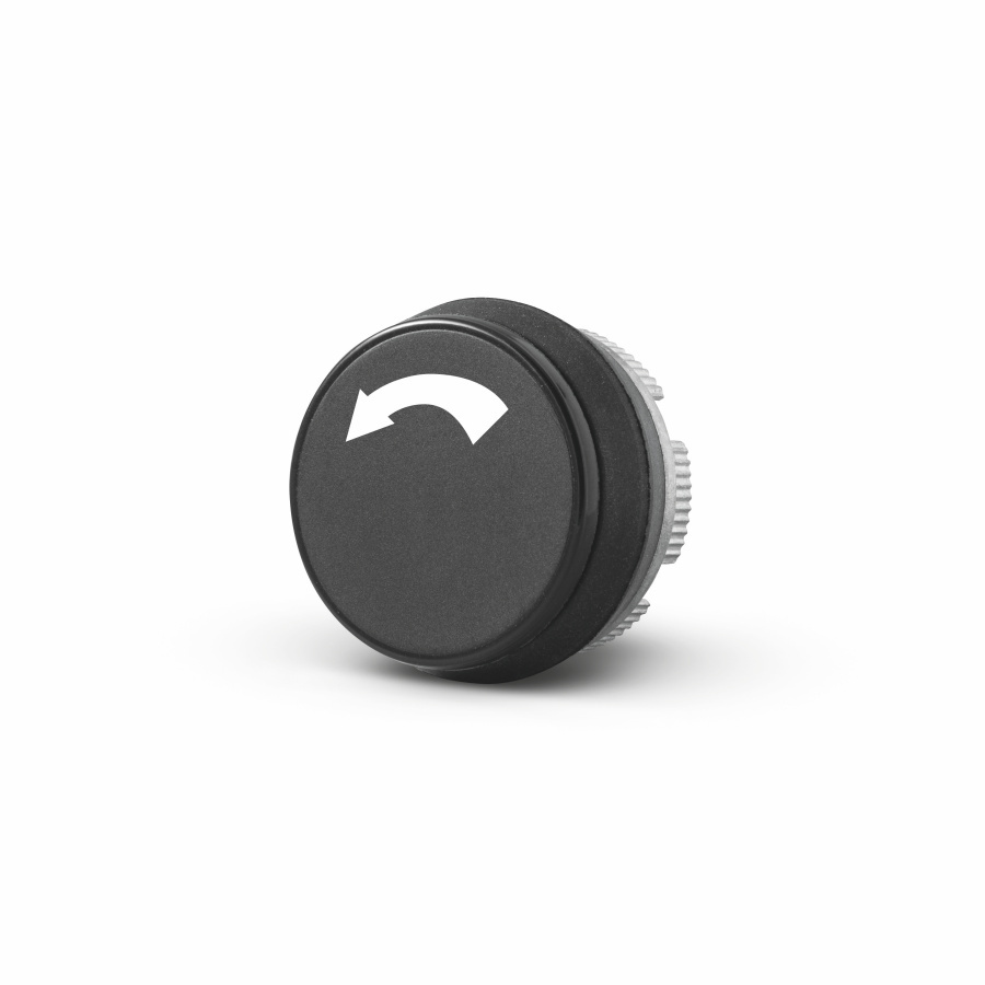 Popis: Tlačítko závěsného ovladače se šipkou OTÁČENÍ VLEVO dvourychlostné, bílý znak na černém podkladu.