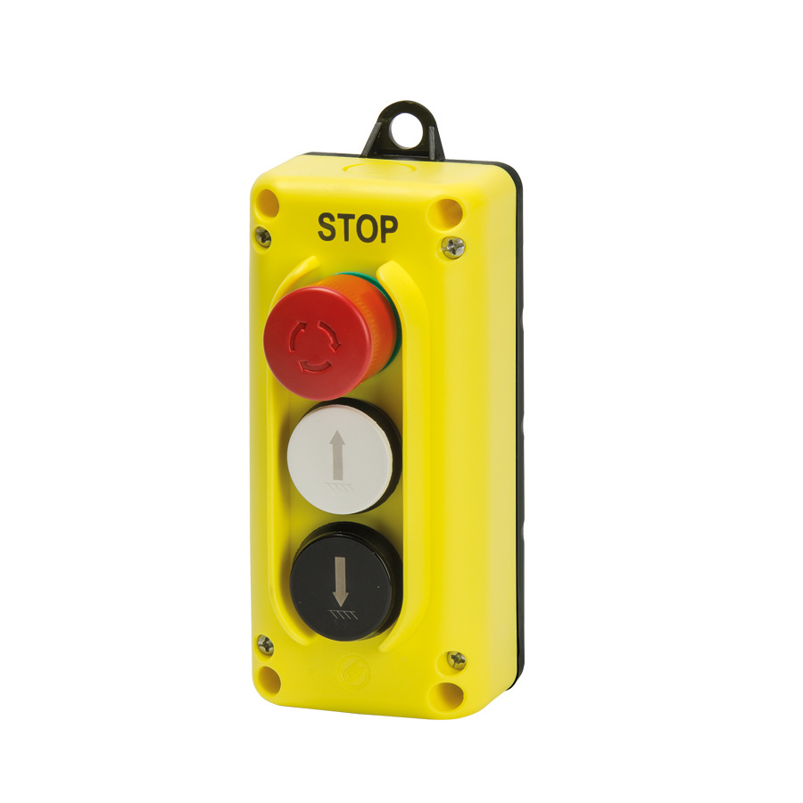 Popis: Jednořadý a jednorychlostní nástěnný ovladač se 3 tlačítky pro zadní zvedací plošinu nákladního automobilu.