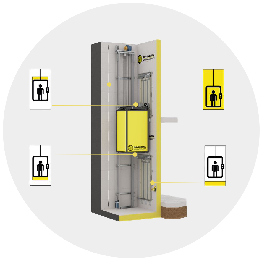 Komponenty Giovenzana pro  VÝTAHY podle norem EN81-20  zahrnují:
